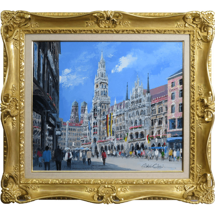力強い桜の大木が、きらびやかな金箔の背景に描かれます。